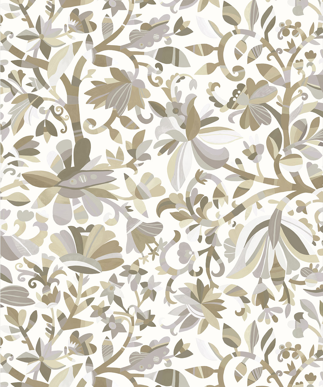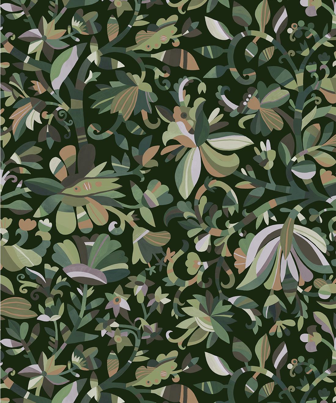 Botanique is a timeless floral design that adapts beautifully to its surroundings – soft and romantic in one space, yet rich and dramatic in another. Delicate petals, grand blossoms and curling stems graze each other in a flowing composition that brings both grace and energy to the wall.