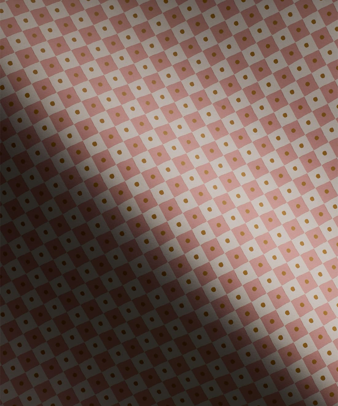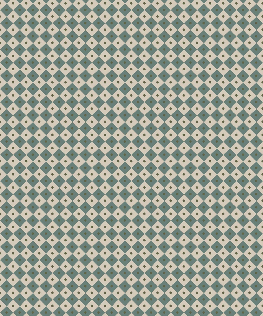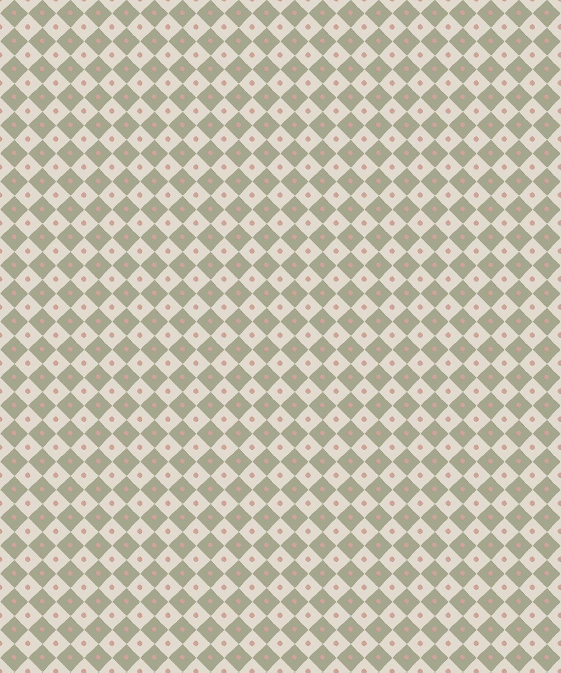 Checkerboard reinterprets a timeless motif with a playful scale and softened palette. Its diamond grid is punctuated by subtle detail, balancing order with charm.