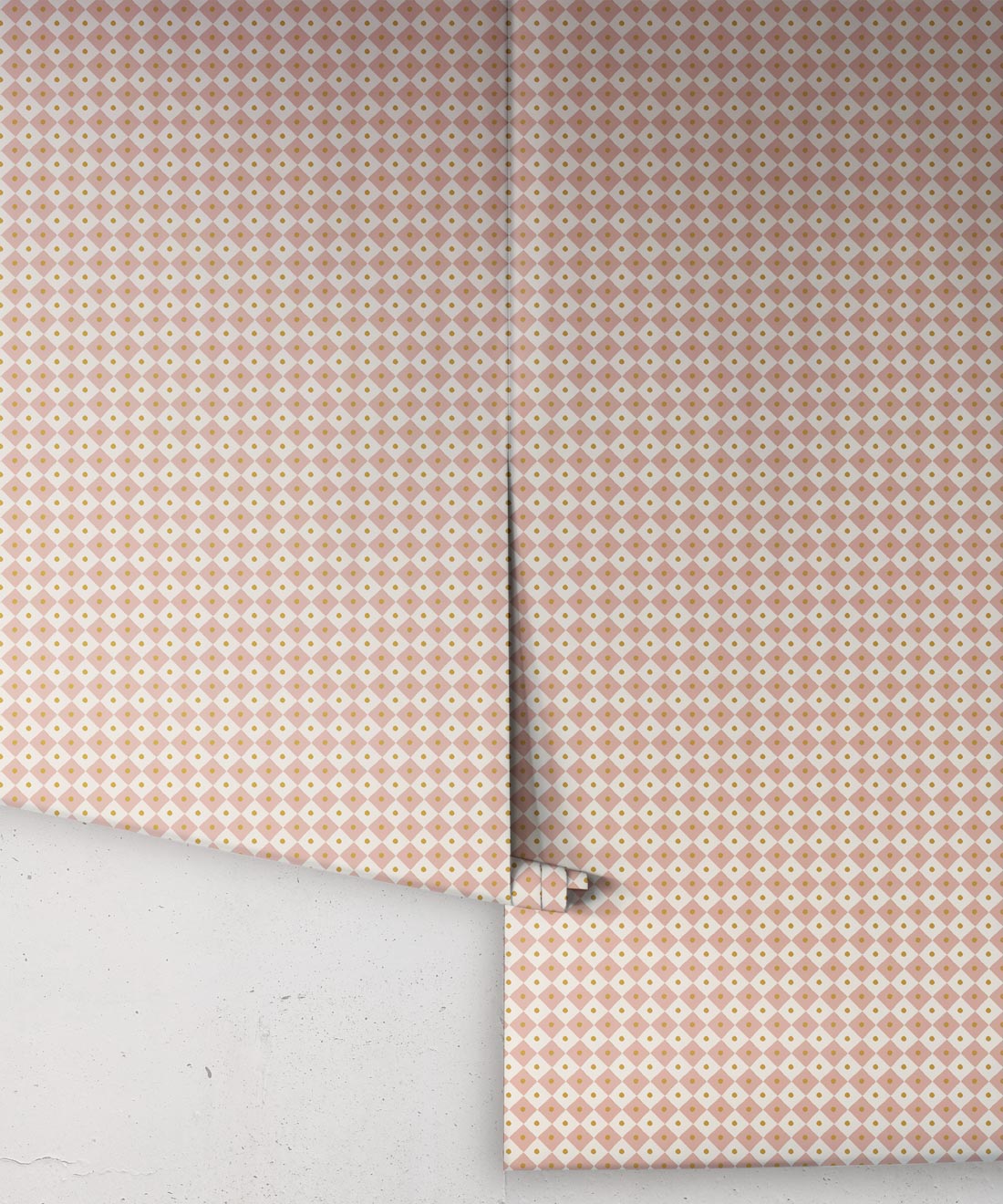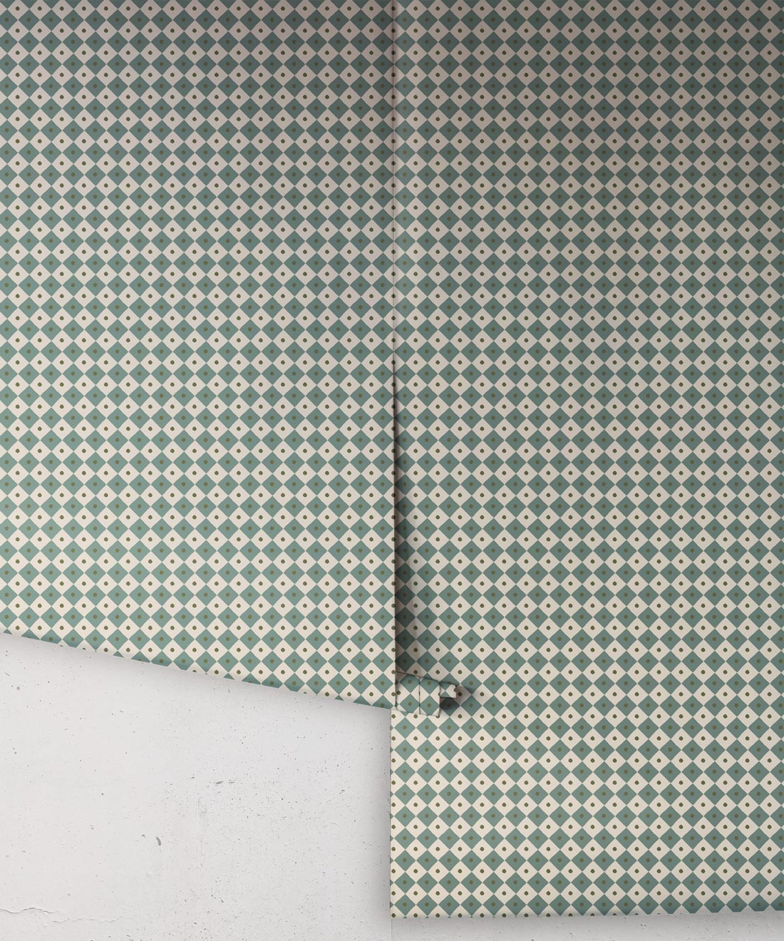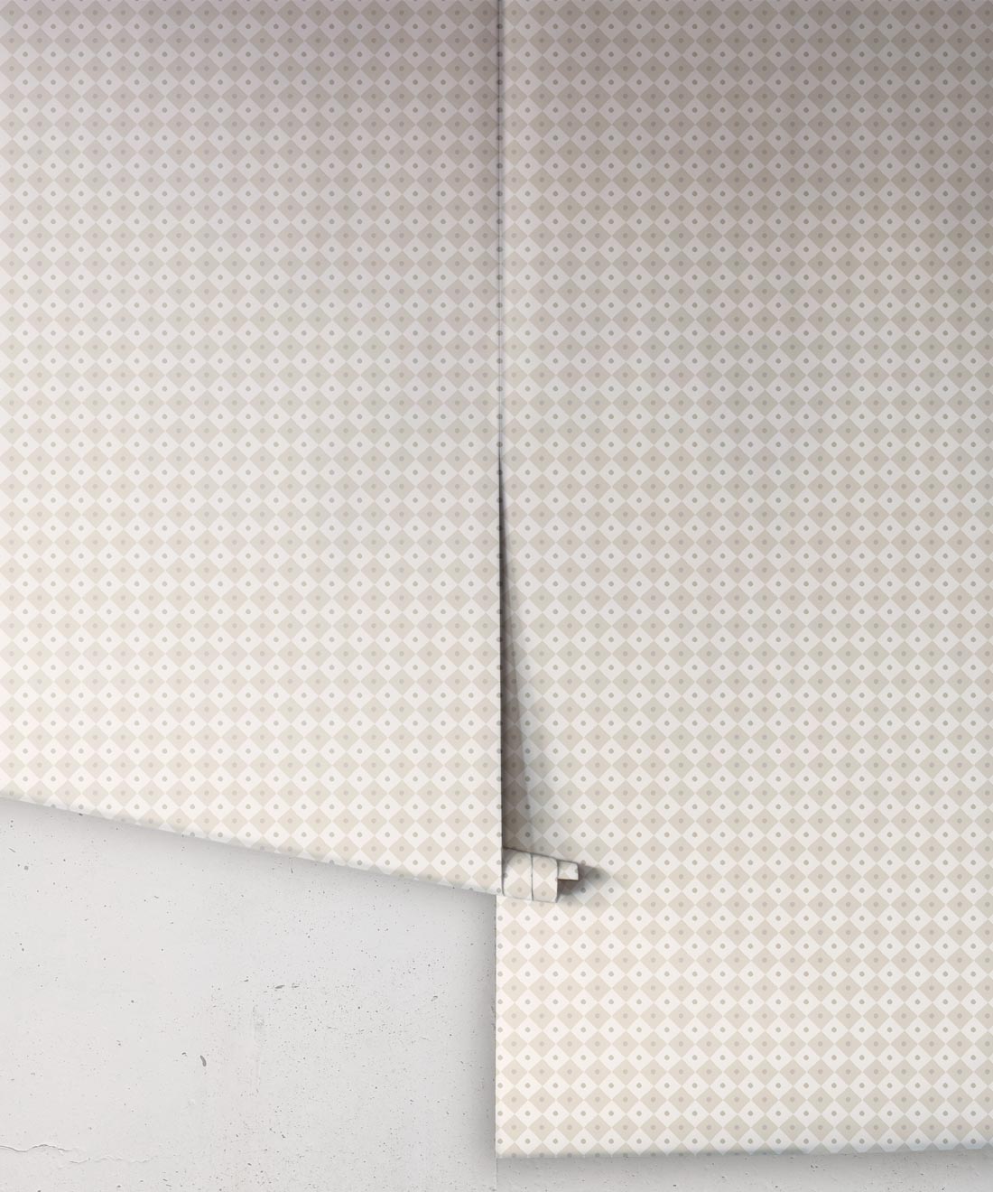 Checkerboard reinterprets a timeless motif with a playful scale and softened palette. Its diamond grid is punctuated by subtle detail, balancing order with charm.