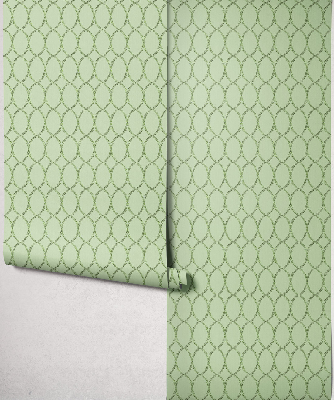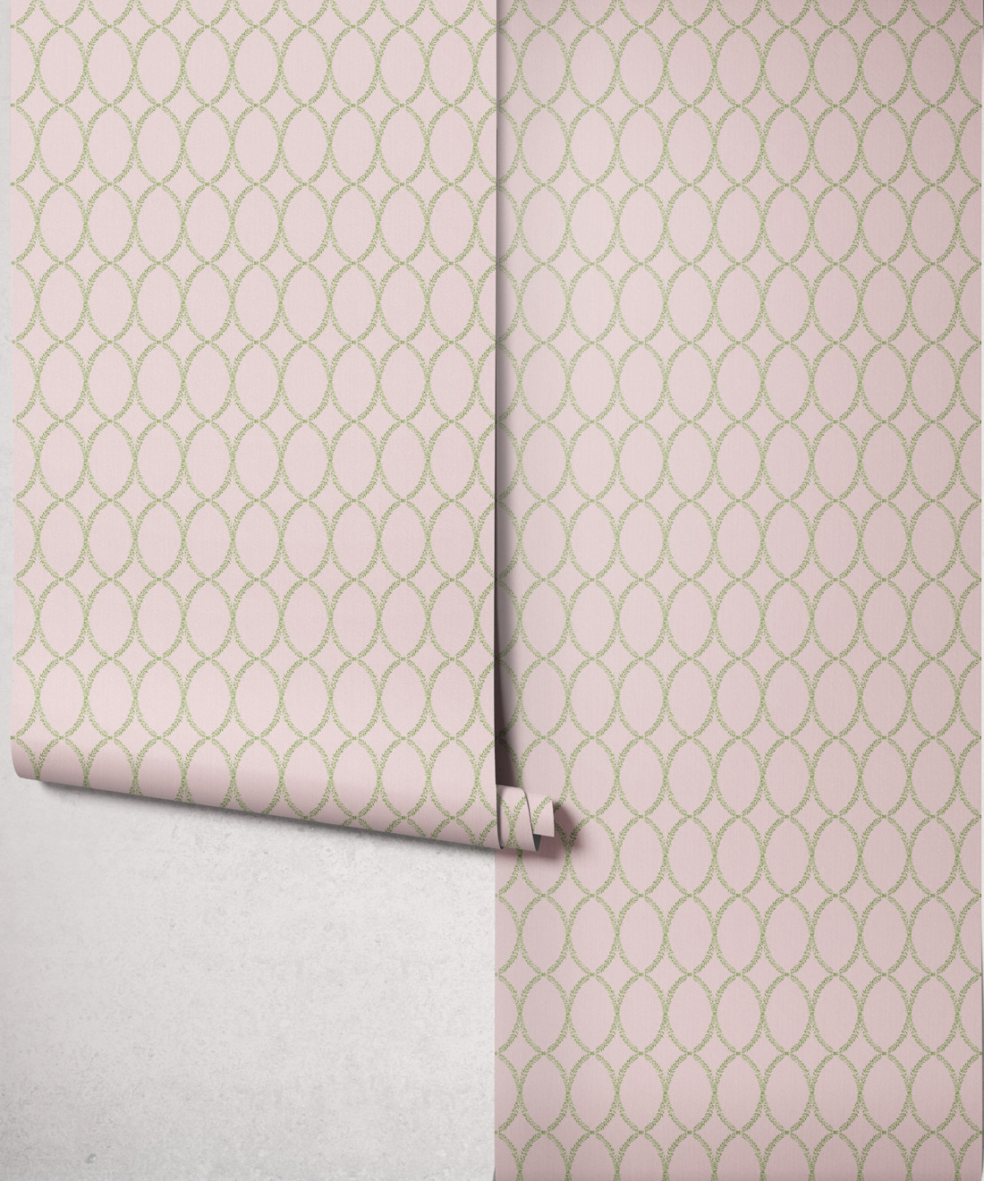 Chloe’s delicate oval vine motif is drawn from Georgian plasterwork. The hand-painted design offers softness and polish in equal measure. With its classic geometry and refined simplicity, Chloe works beautifully in bedrooms, dining areas or kitchens where quiet elegance is key.
