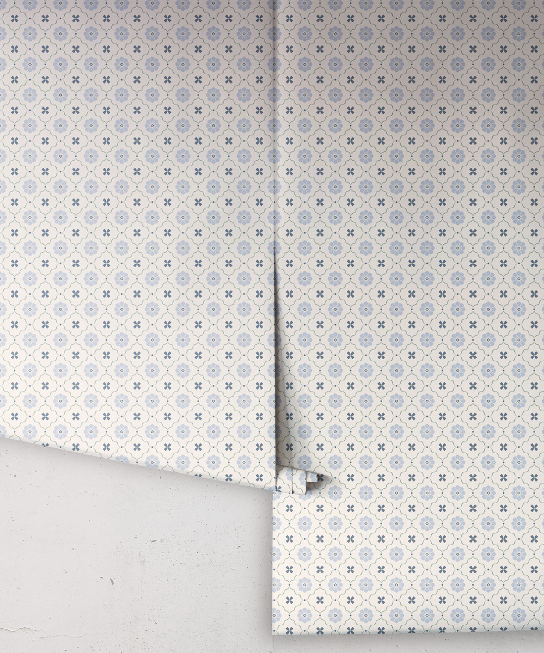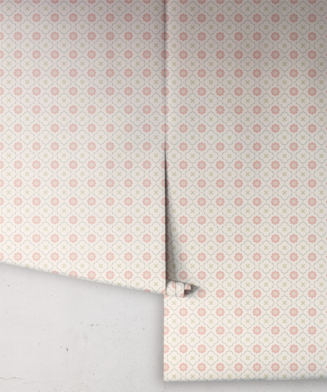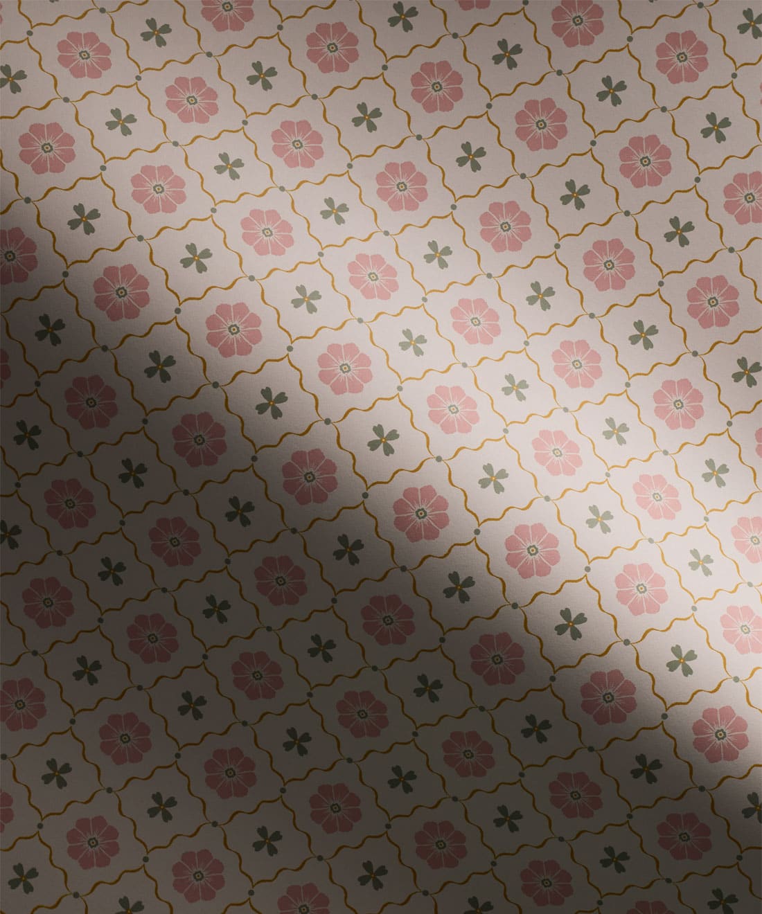 Esme Wallpaper brings together hand-drawn blossoms in a cute, timeless repeat evocative of vintage tiles. Both sweet and sophisticated, it’s a versatile floral that pairs beautifully with other Petite prints.