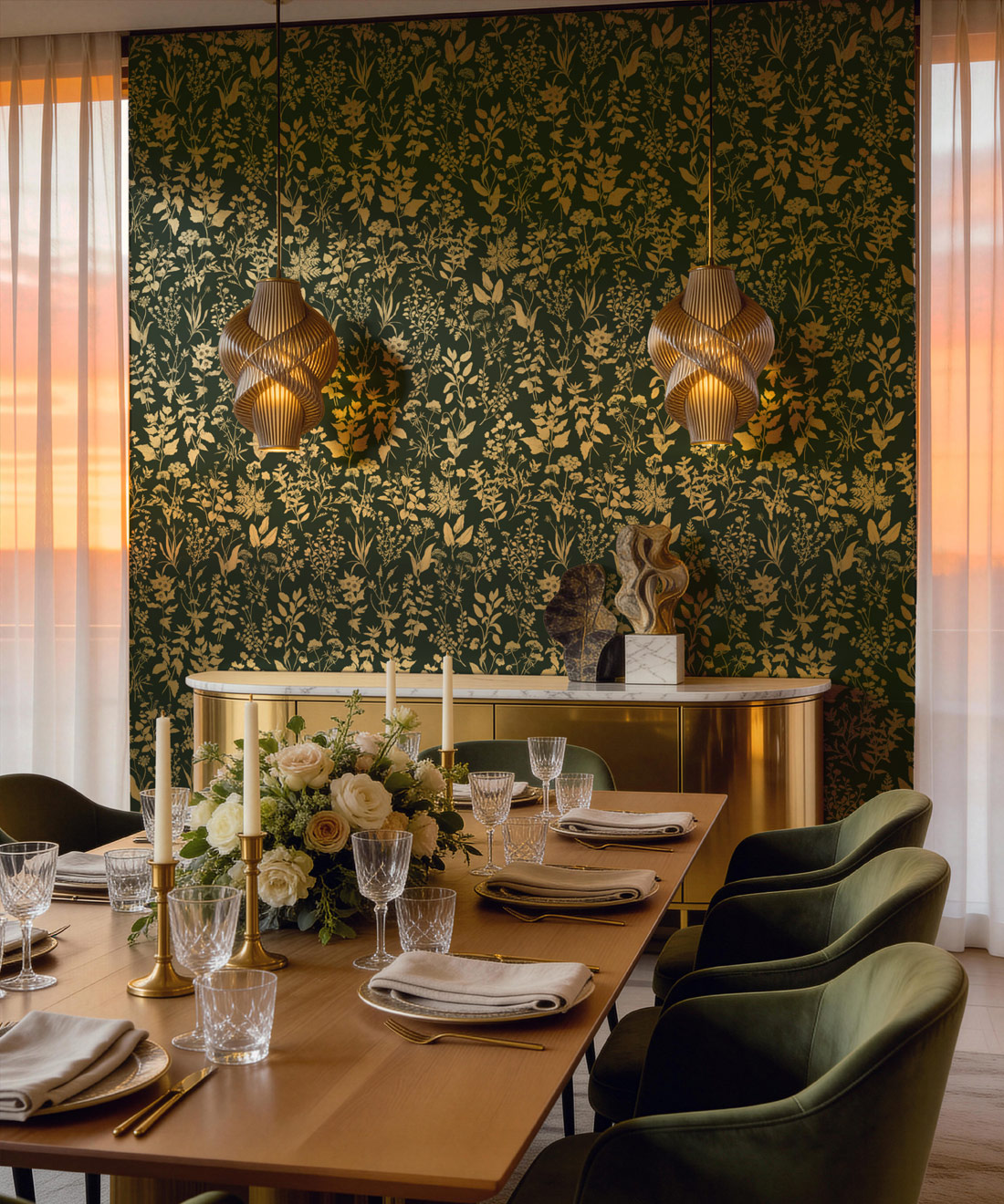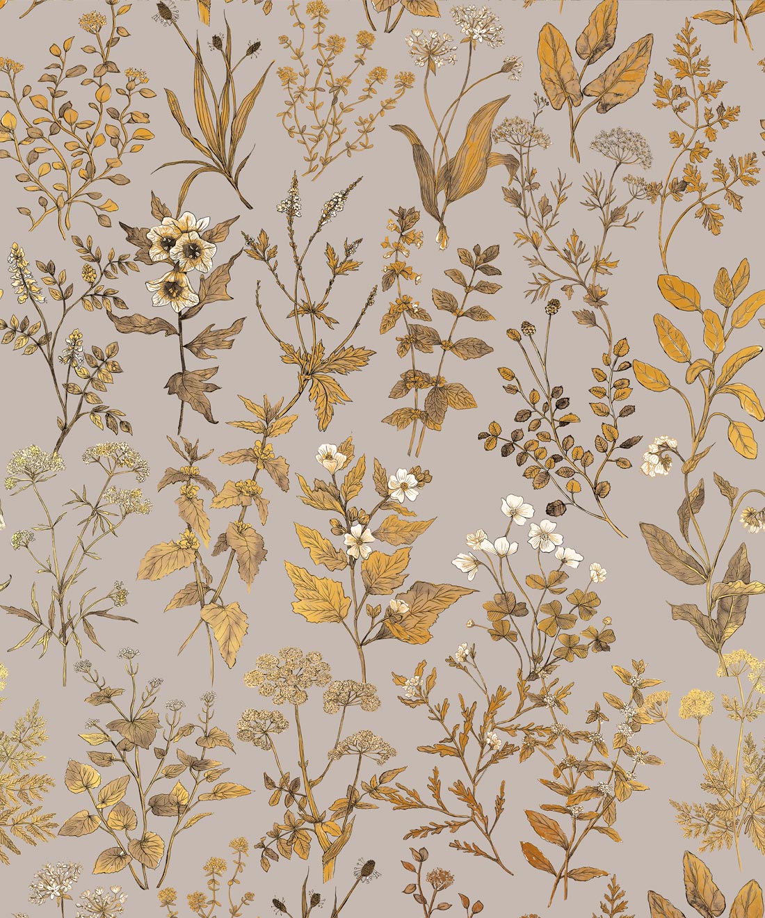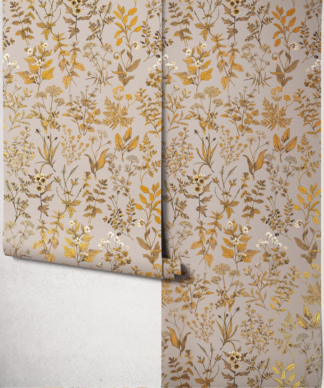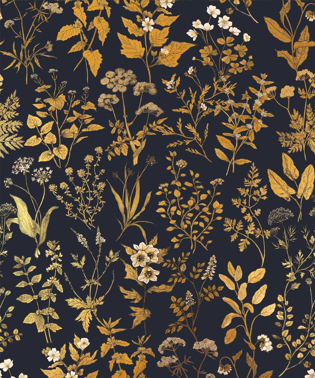 Inspired by the artist’s own journey into the world of herbs and their importance for health and wellbeing, Herbarium Antique wallpaper is an ode to this magnificent subject. Hand-drawn botanical elements and watercolours sit on rich Victorian-style backgrounds, enhanced with antique gold metallic accents. Forest greens, deep blues and layered metallic detail create a wallpaper rich in depth, texture and character.