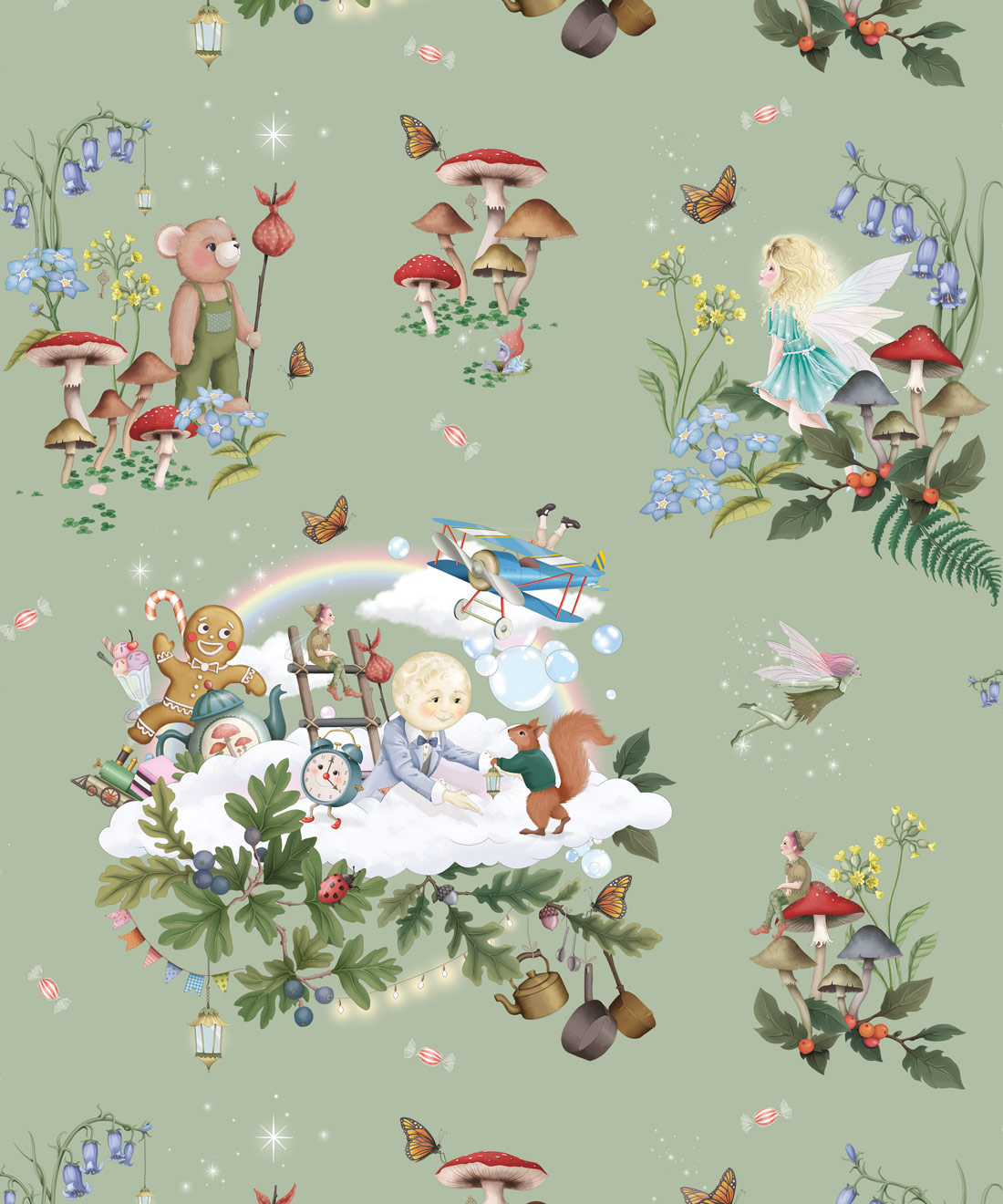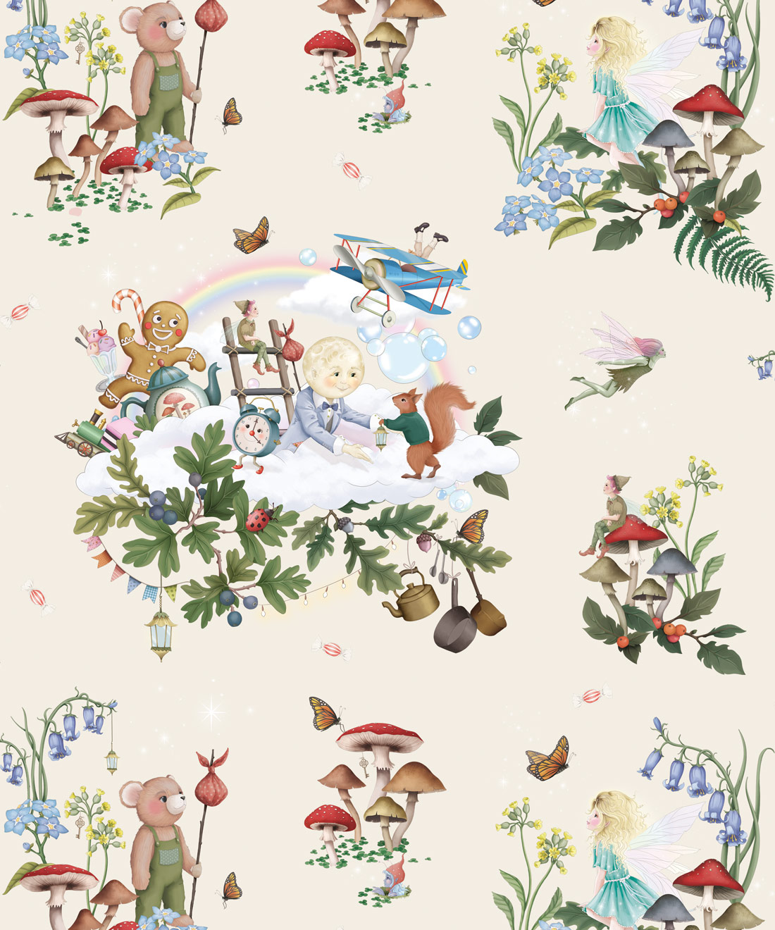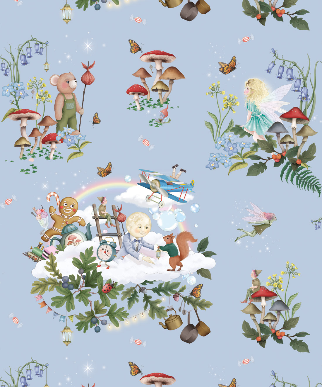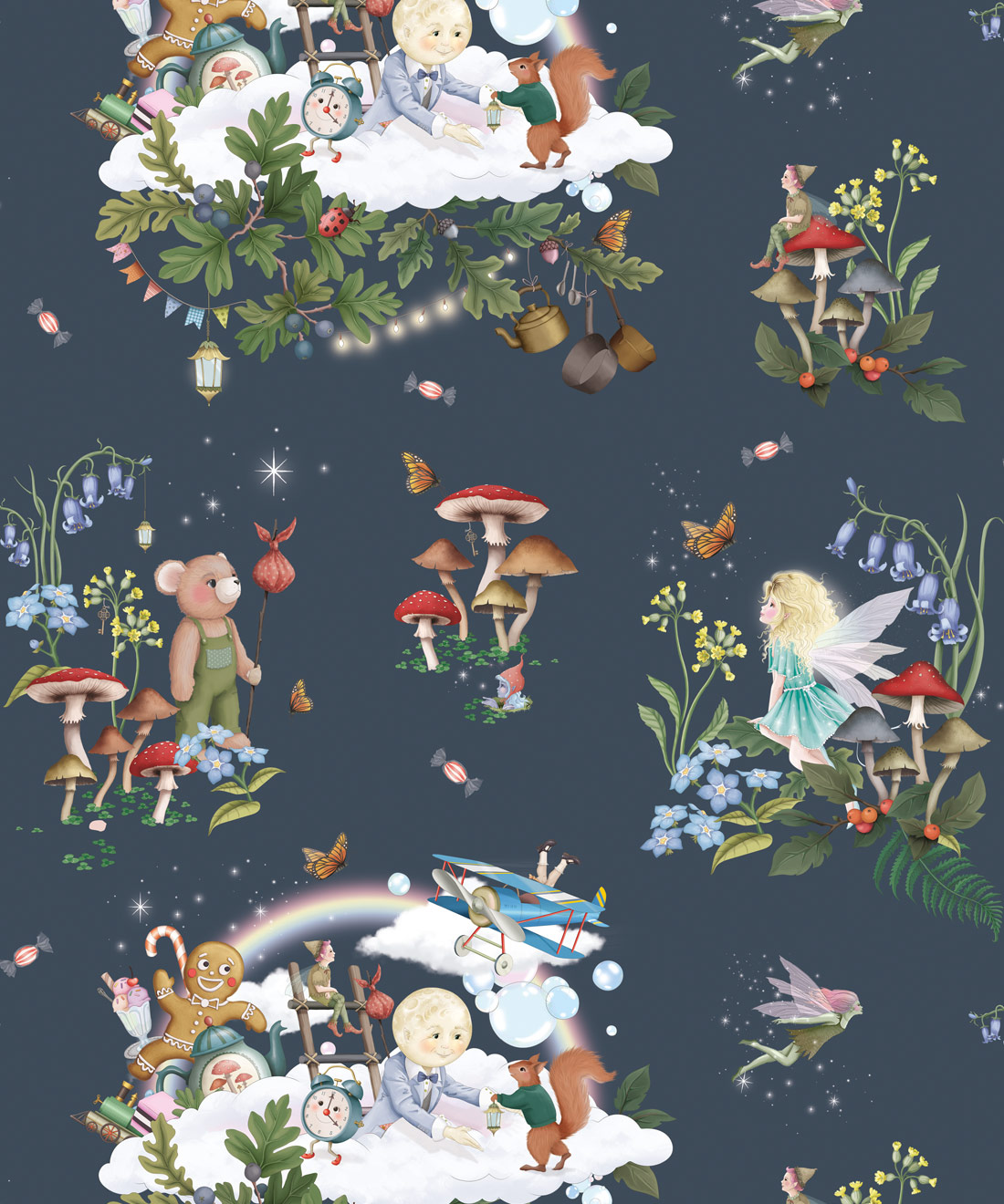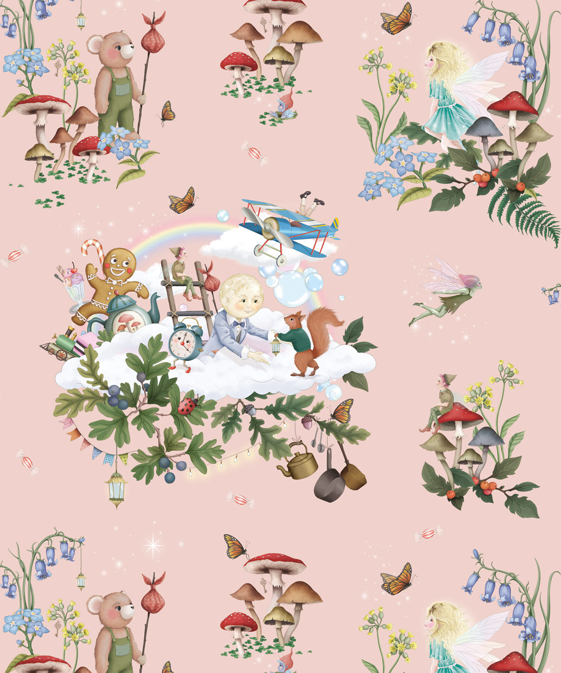 Inspired by the magical realms found within The Magic Faraway Tree stories, this design features soft skies, floating clouds and whimsical details that spark imagination while remaining gentle and calming. Brought to life through Fleur Harris’s delicate storybook illustrations, it brings a sense of wonder without overwhelming a space.