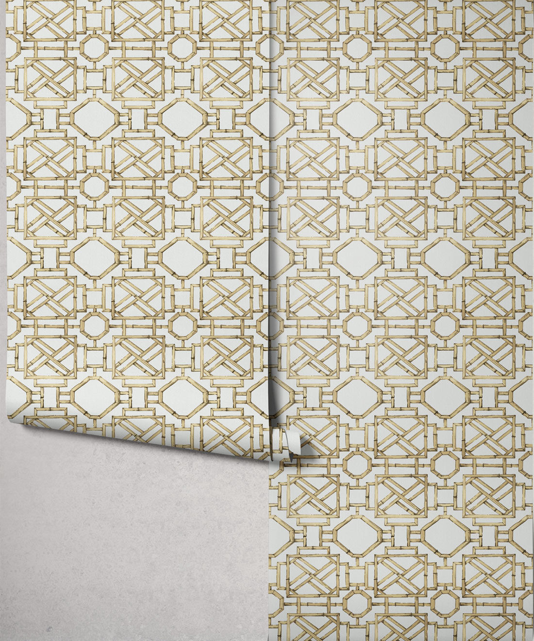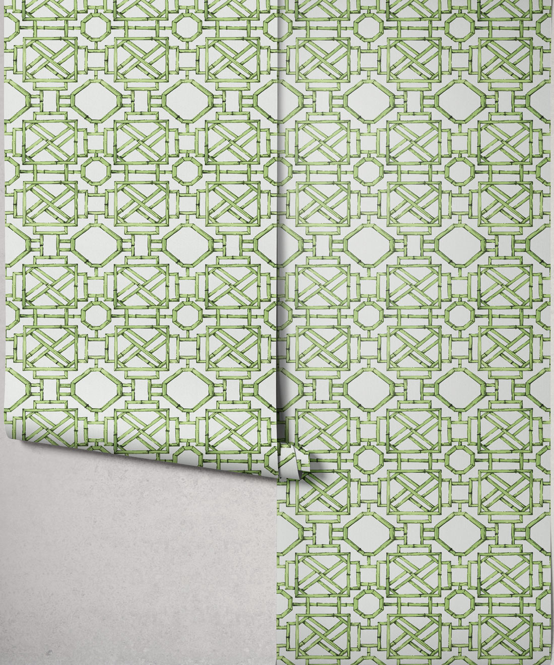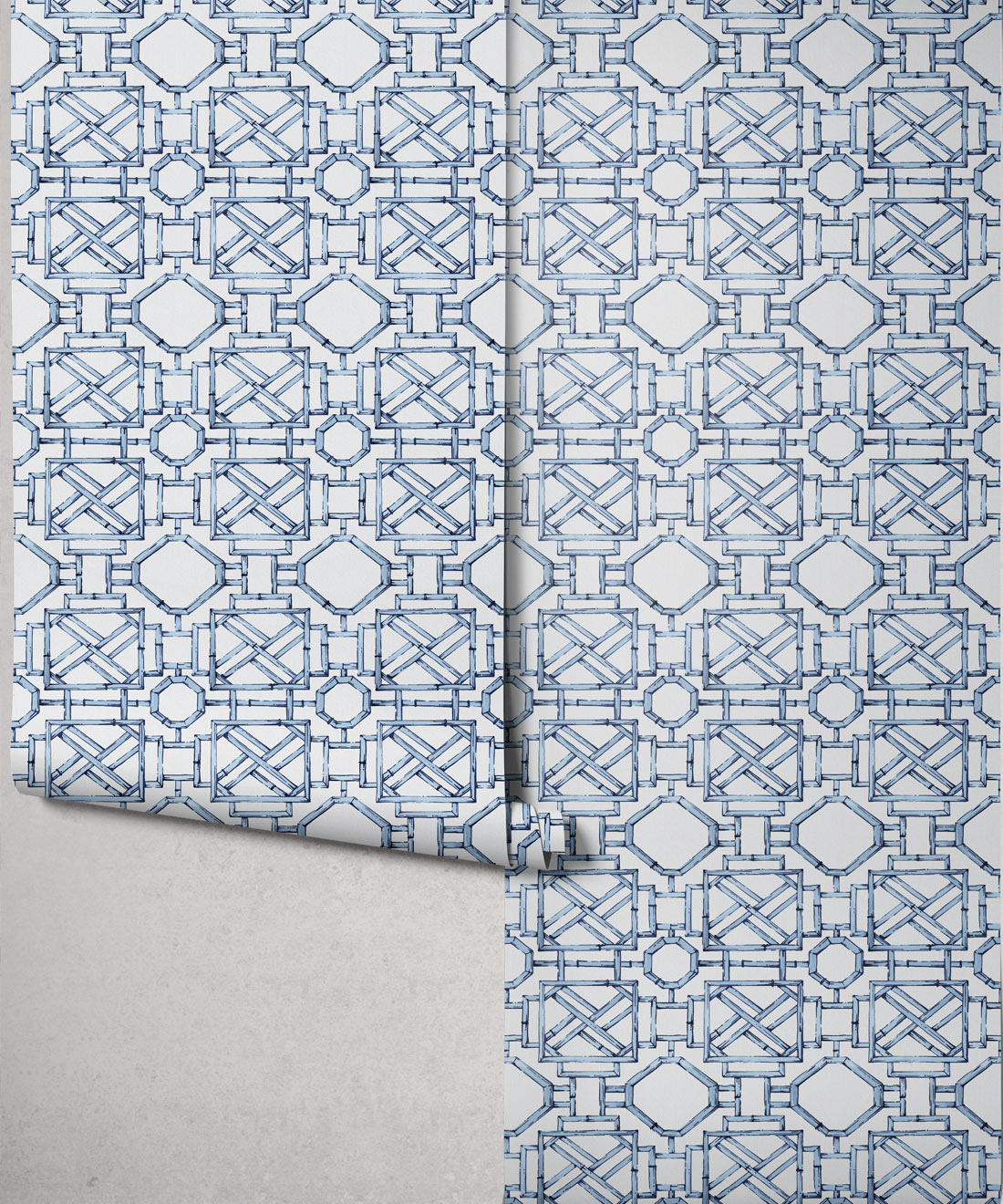 Mustique reimagines the bamboo trellis through the lens of timeless Chinoiserie. Hand-painted, this design balances symmetry and organic movement, creating a versatile pattern that feels worldly yet relaxed. It brings a subtle sense of luxury to spaces where sophistication meets ease including entryways, sunrooms, bedrooms, powder rooms, bathrooms or dining rooms.