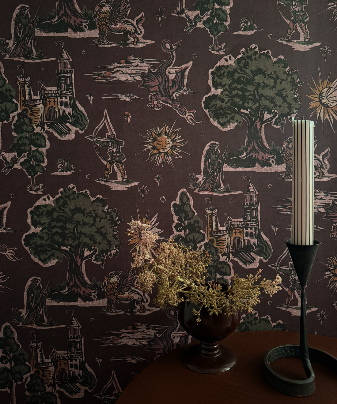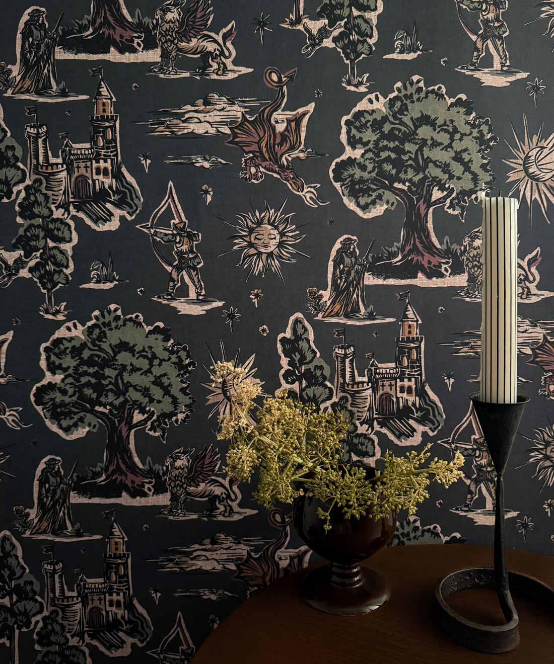 Mythical creatures and folklore-inspired motifs bring narrative charm to Realm. Crafted using lino cut techniques that emulate woodblock printing, it blends whimsy with timeless design. Available in eight colourways, Realm enriches walls with a story-led aesthetic that works across eclectic and classic interiors alike.