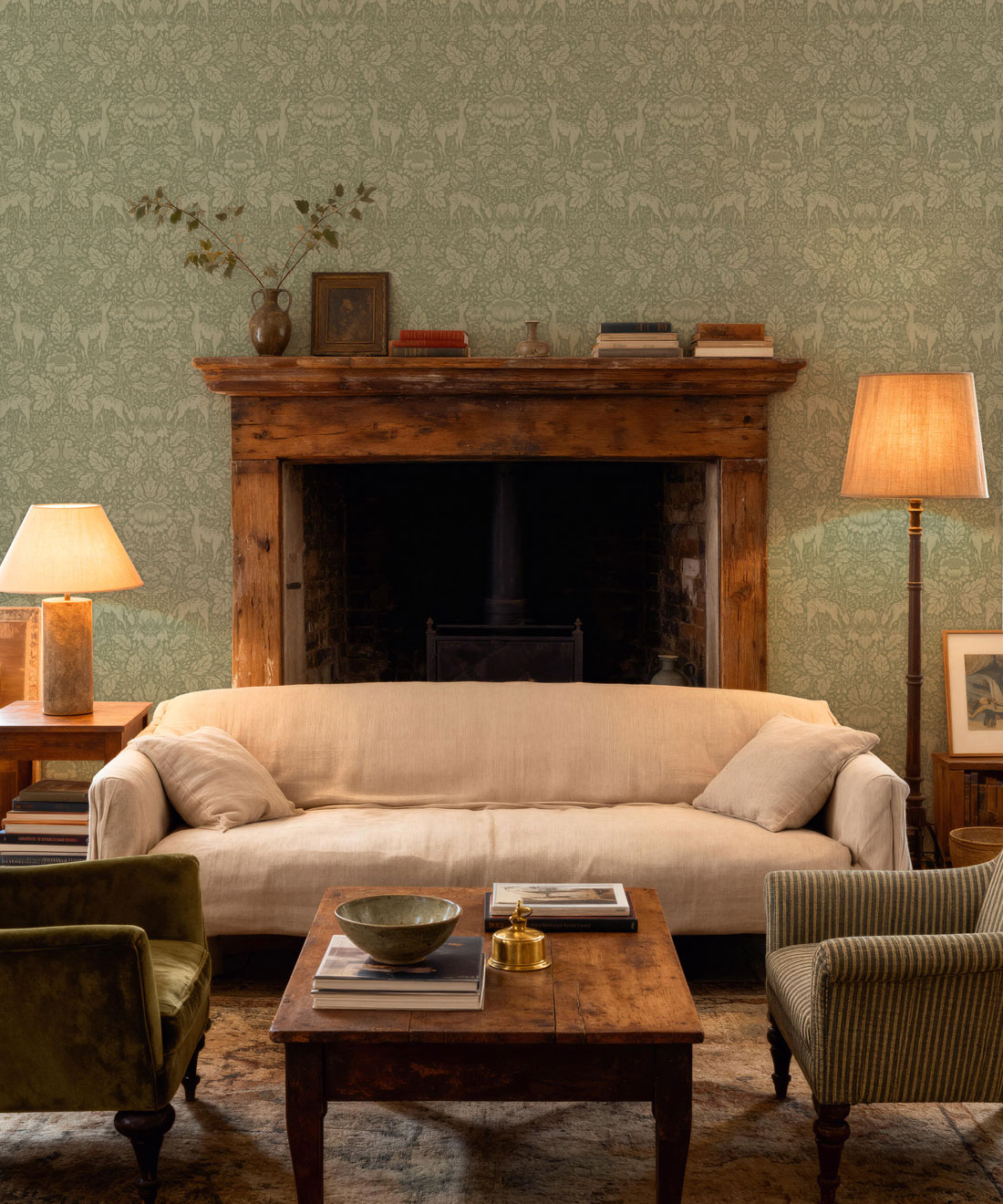 Blending traditional damask styling with Arts & Crafts influences, Richmond features deer, oak trees, birds and woodland flora arranged in a mirrored repeat. The design reveals its detail with clarity, allowing each motif to feel both refined and expressive. Available in eight colourways, Richmond brings a sense of heritage and balance to interiors that honour tradition while feeling considered and current.