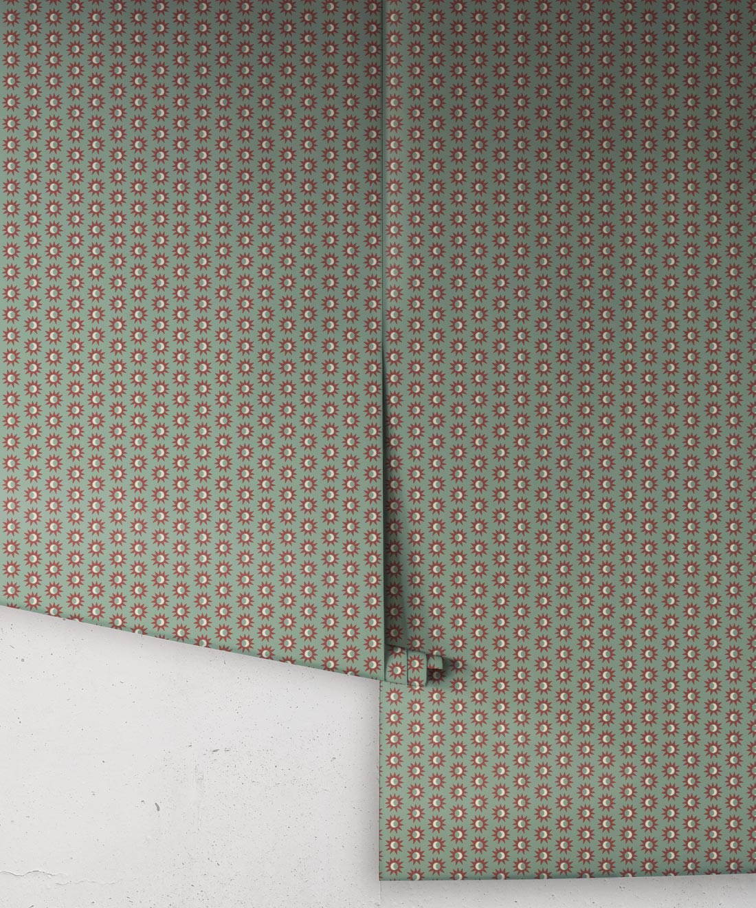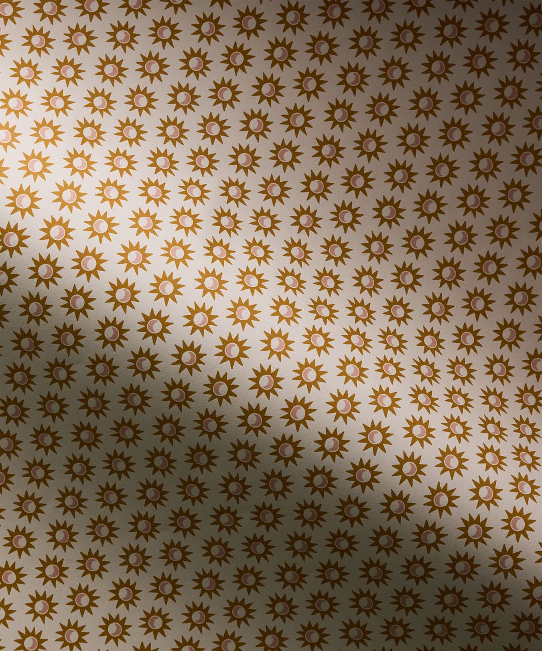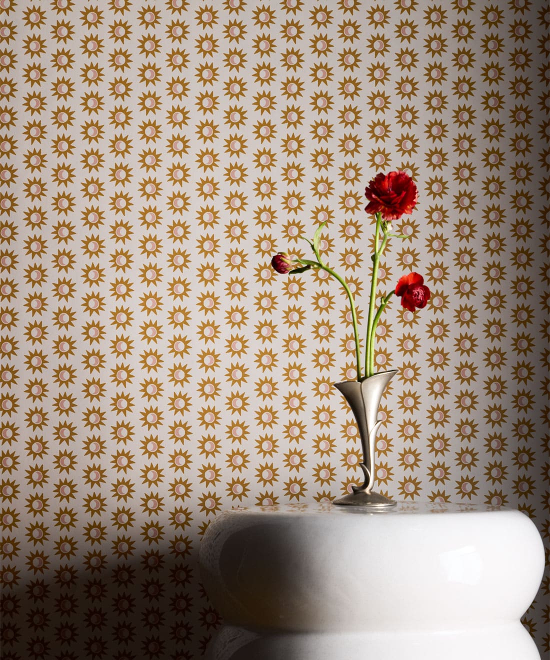 Sunburst radiates energy with repeating star-like motifs that enliven walls. The pattern balances boldness with delicacy, offering brightness without excess.
