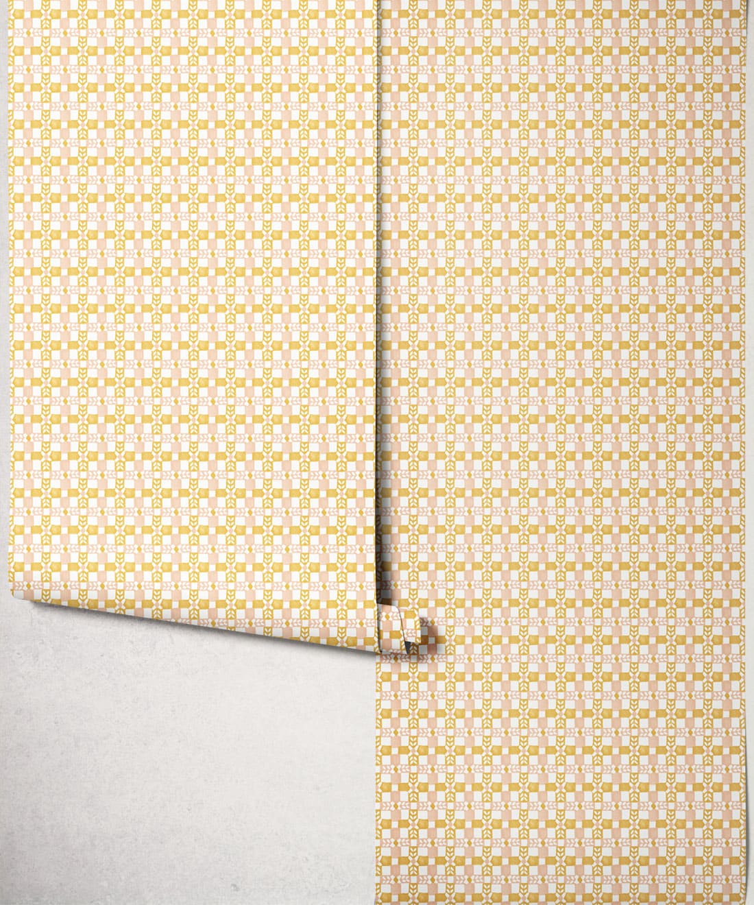 Hand painted details soften the geometry of the design while maintaining a clean decorative repeat. This makes Wicker an ideal companion to the collection’s expressive florals and botanicals.