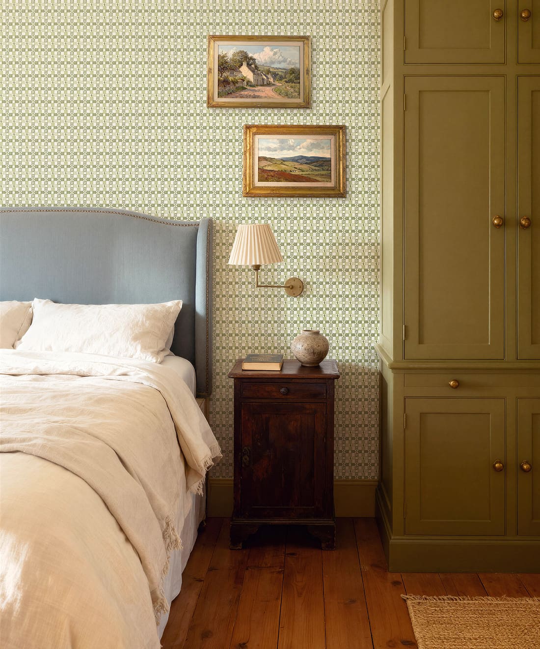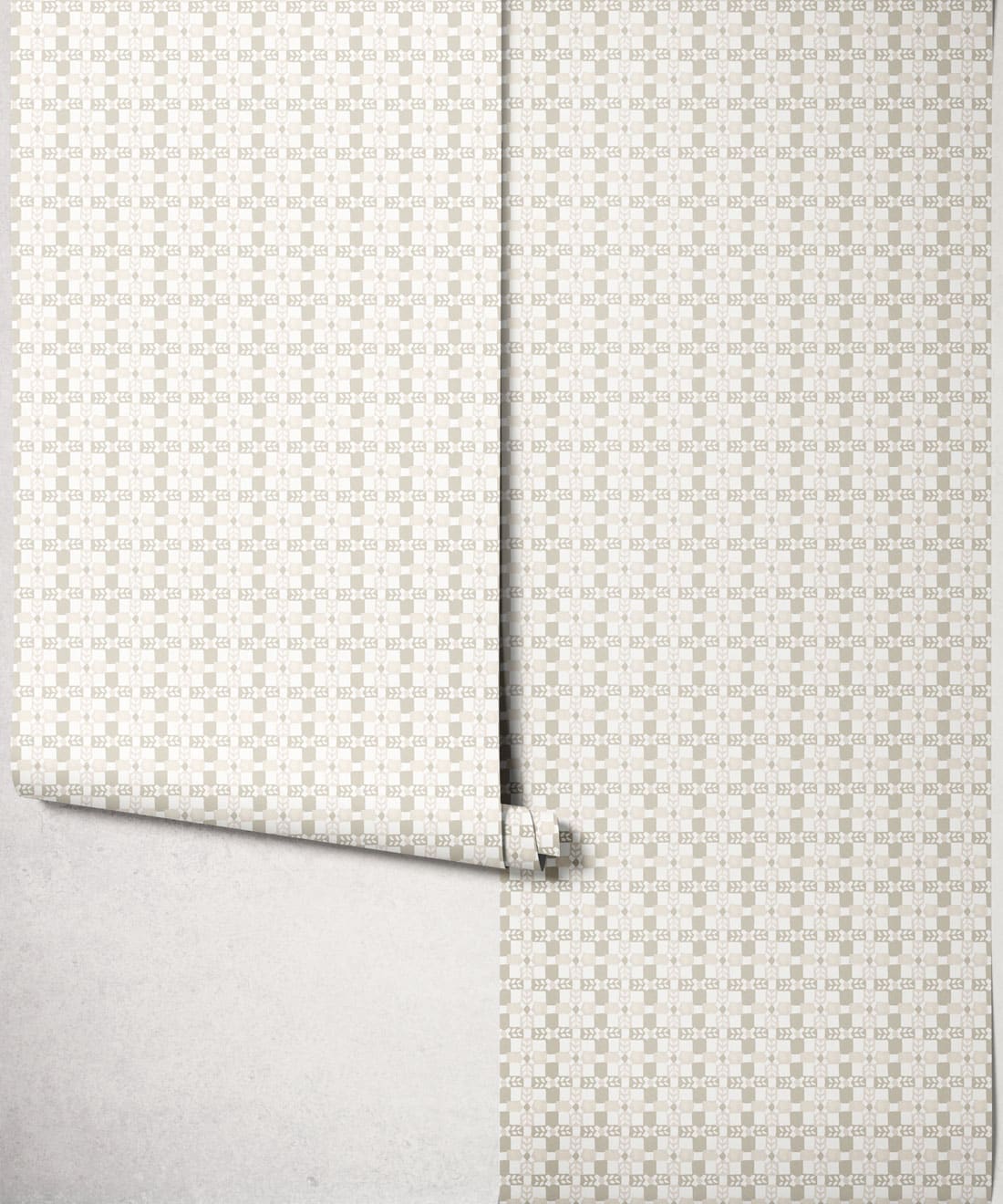 Wicker is a small scale geometric wallpaper inspired by woven basket textures and traditional rattan patterns. Interlacing lines create a repeating structure that brings subtle texture to the wall.